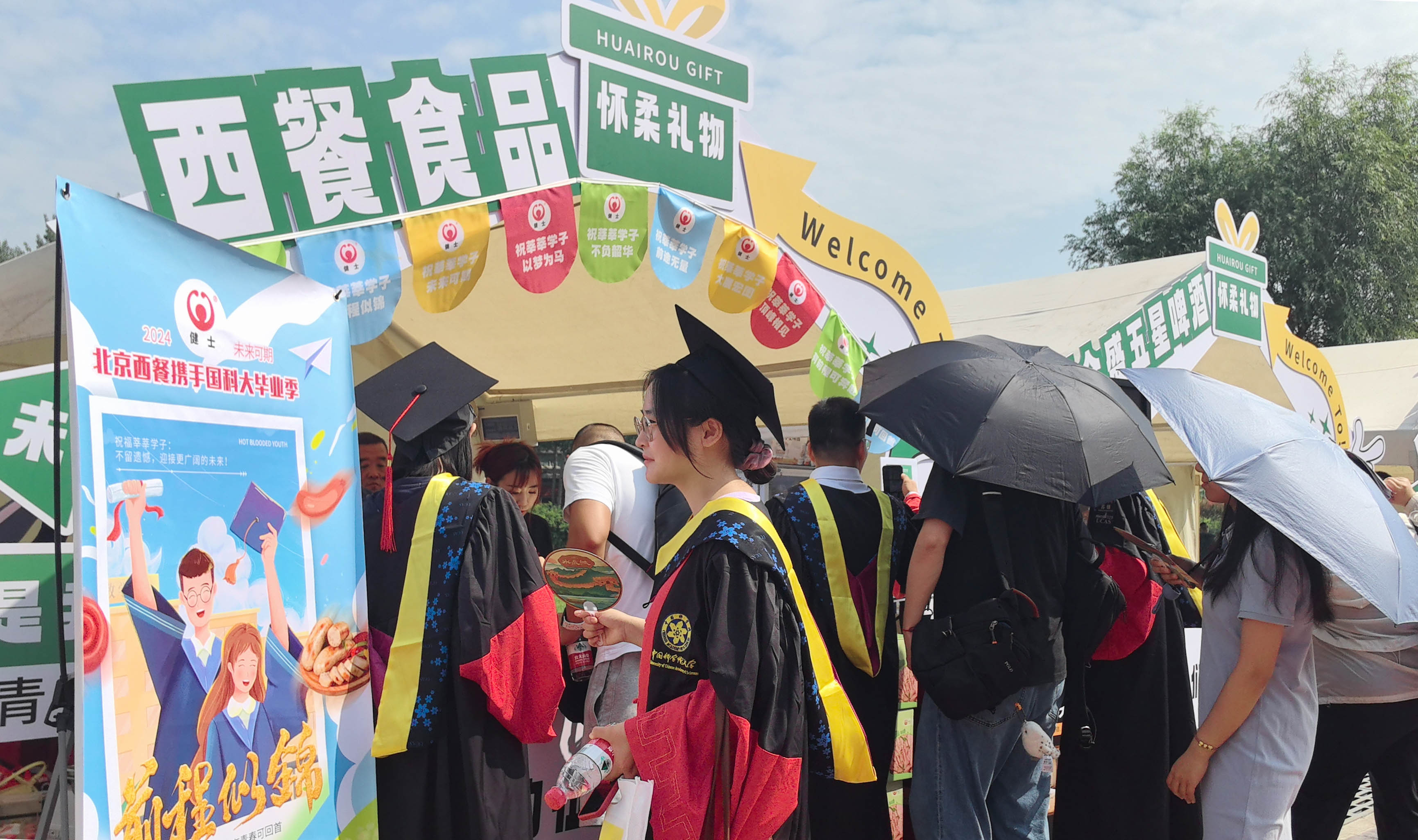 7月6日上午,中國科學院大學2024年度畢業(yè)典禮暨學位授予儀式在雁棲湖校區(qū)隆重舉行。北京西餐受邀參與以“畢業(yè)季·懷柔禮”為主題的推廣市集活動,為5000余名畢業(yè)生代表與7000余名畢業(yè)生親友展示推介西餐產(chǎn)品,品嘗懷柔本土企業(yè)的特色美食。