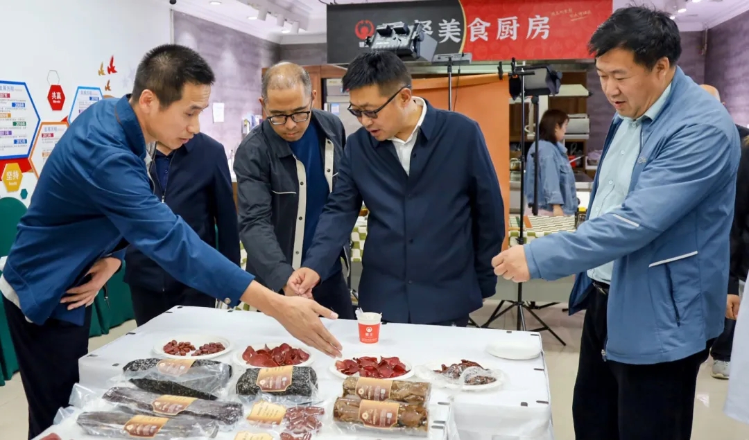 各位領(lǐng)導(dǎo)親自走進(jìn)西餐食品生產(chǎn)車間,觀摩生產(chǎn)流程,了解產(chǎn)品研發(fā)。在深入交流中,雙方就玉樹牦牛肉西餐食品研發(fā)、市場前景、項(xiàng)目合作等議題展開熱烈討論,并初步達(dá)成合作意向。
