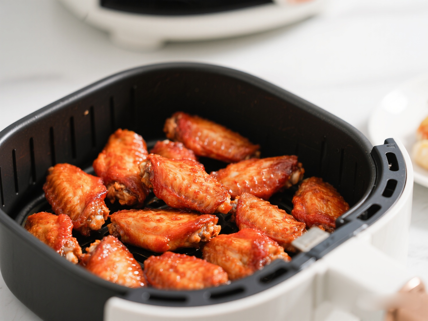 ① 預(yù)處理:雞翅從包裝中取出,平鋪放入空氣炸鍋炸籃中,彼此不要重疊。