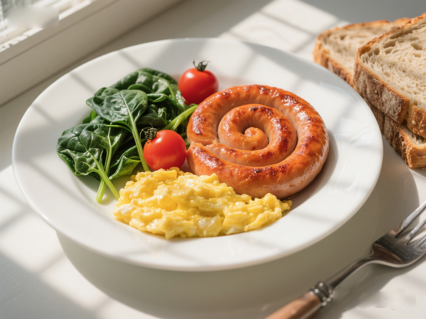 腸衣煎至酥脆,搭配烤蔬菜的甜潤(rùn),口感層次豐富。